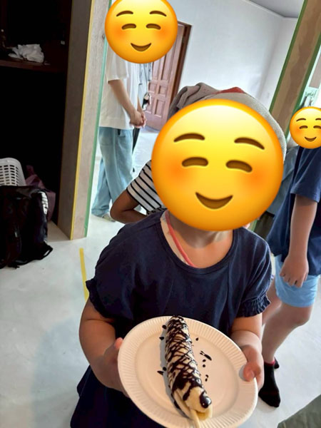 チョコバナナ、かき氷、フランクフルトと沢山おやつを食べながら、普段ちあふるで会うお子さんや、他の事業所のお子さんとも話しながらのんびりと過ごしてもらいました。