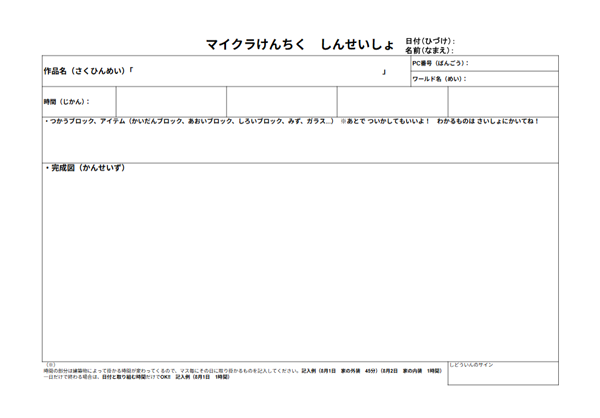 建築を行う際には、最初に『マイクラ建築申請書』を作成します!!