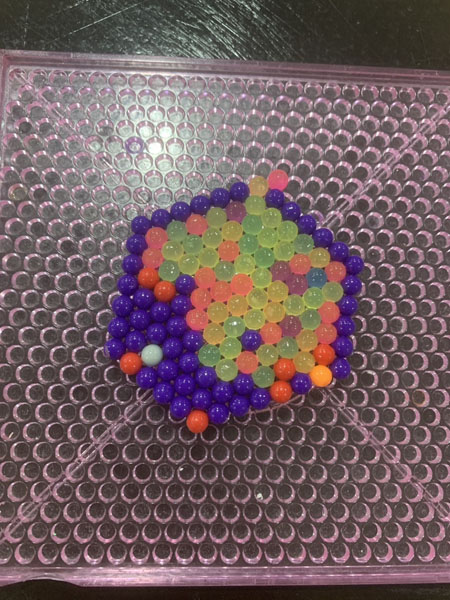 Bさんはカラフルなビーズを組み合わせて、個性的な六角形の形を制作。色の組み合わせを工夫しながら、自分らしい作品に仕上げていました。