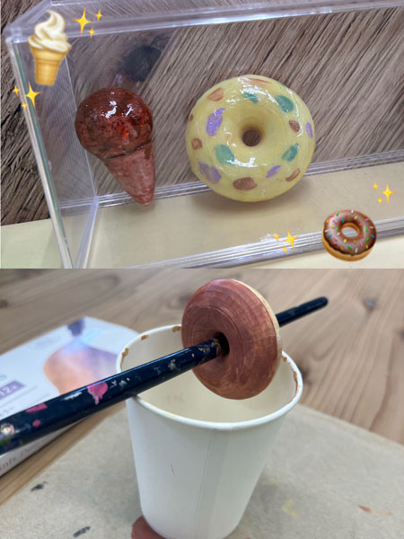 こちらのドーナツも、レジンを塗って光沢を出して仕上げています。